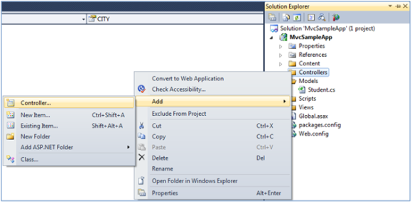 Add a controller class. In Solution Explorer, right-click the Controllers folder and then select Add Controller.