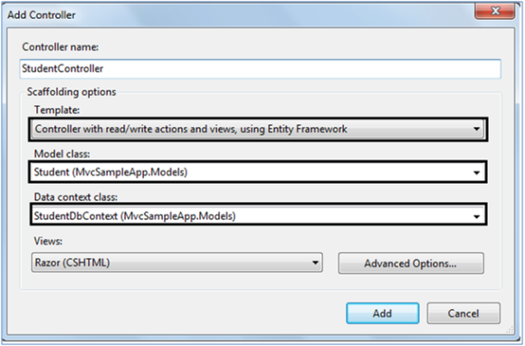 · Data context class: StudentDbContext (MvcSampleApp.Models).