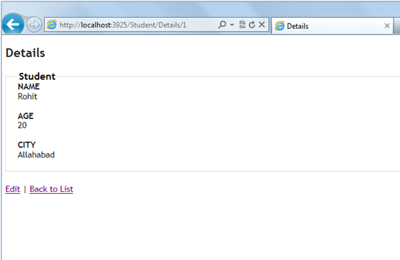 Now run or debug your application and add some student records. It will something look like as shown below: